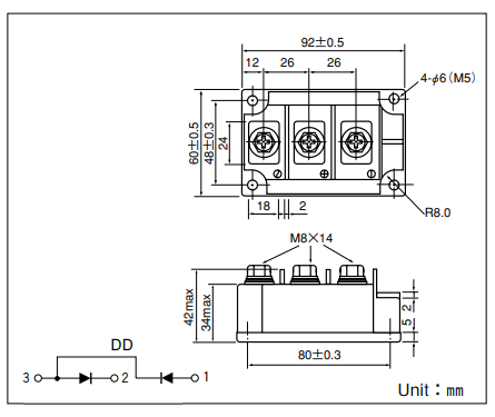 1600V | 60A | 111°C | 6000A2S | 1100/1200A | 1,35V | Power Diode Module 1600V 60A | |